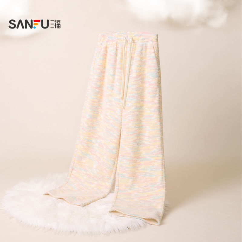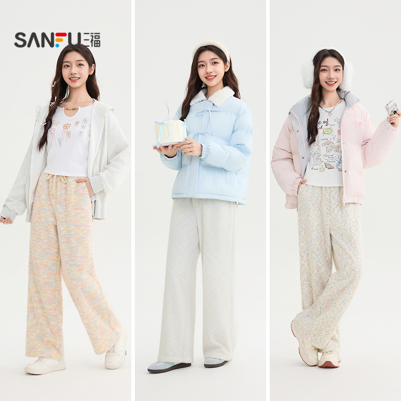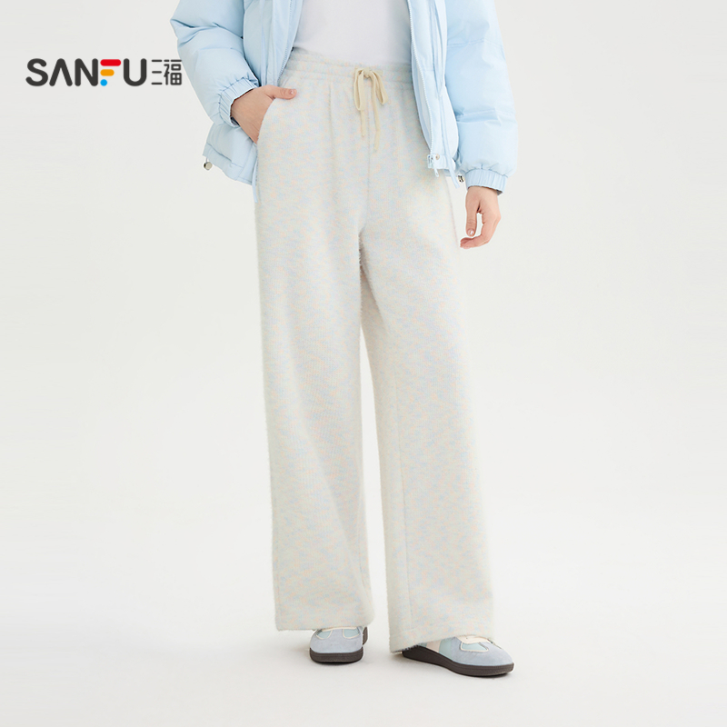 2025新款 女装 冬季 松弛慵懒风直筒阔腿裤 宽松加绒糯米裤 三福休闲裤