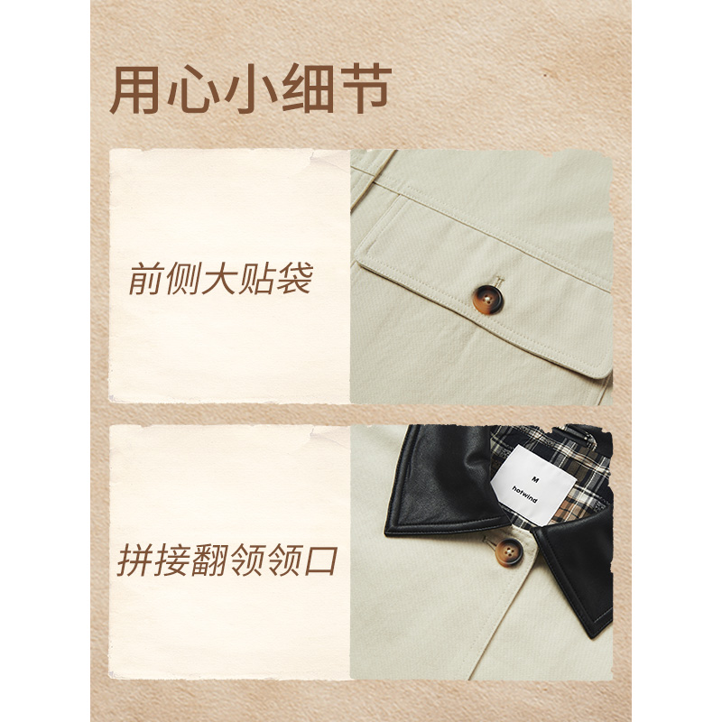 热风女士风衣2025年秋季 巴恩风复古设计感翻领撞色廓形外套 新款