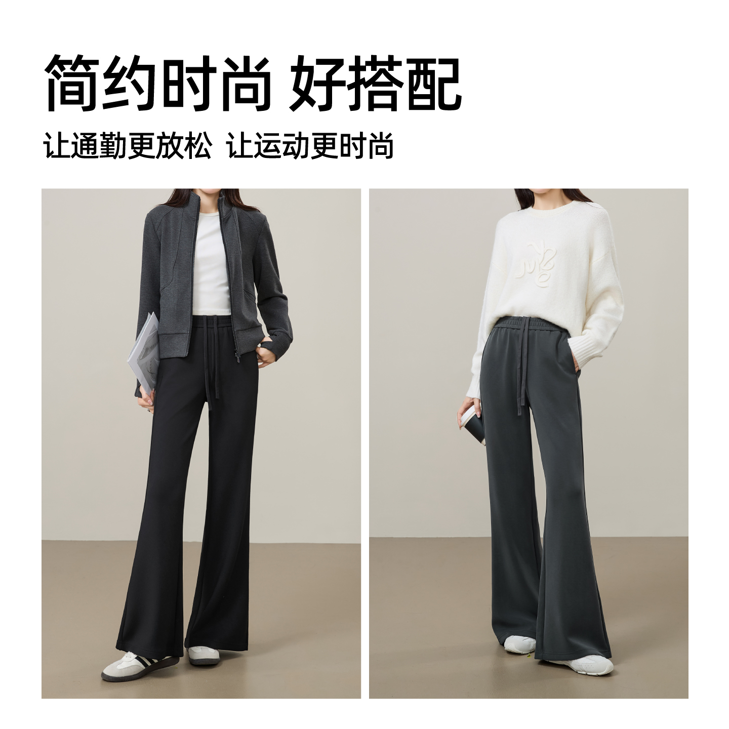 子 弹力松紧腰黑色空气感休闲裤 逸阳莫代尔微喇叭裤 女2025年秋新款