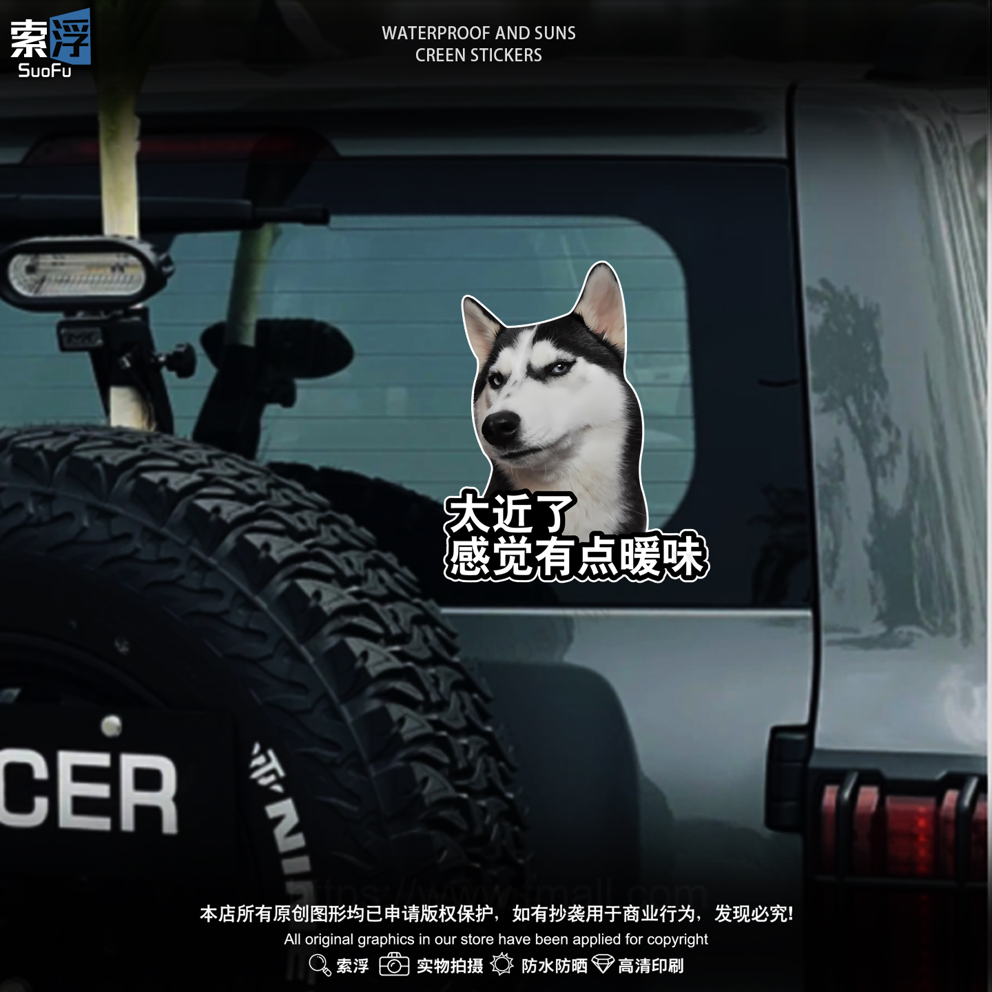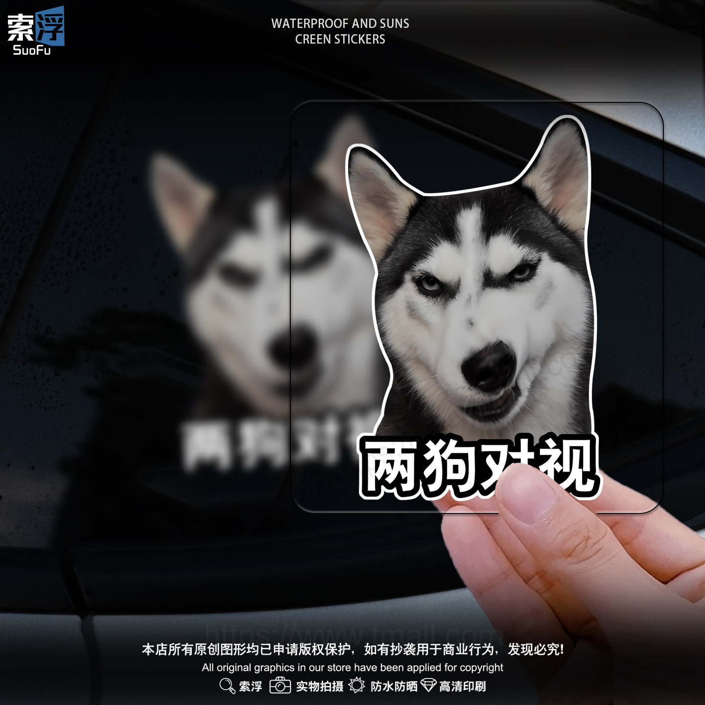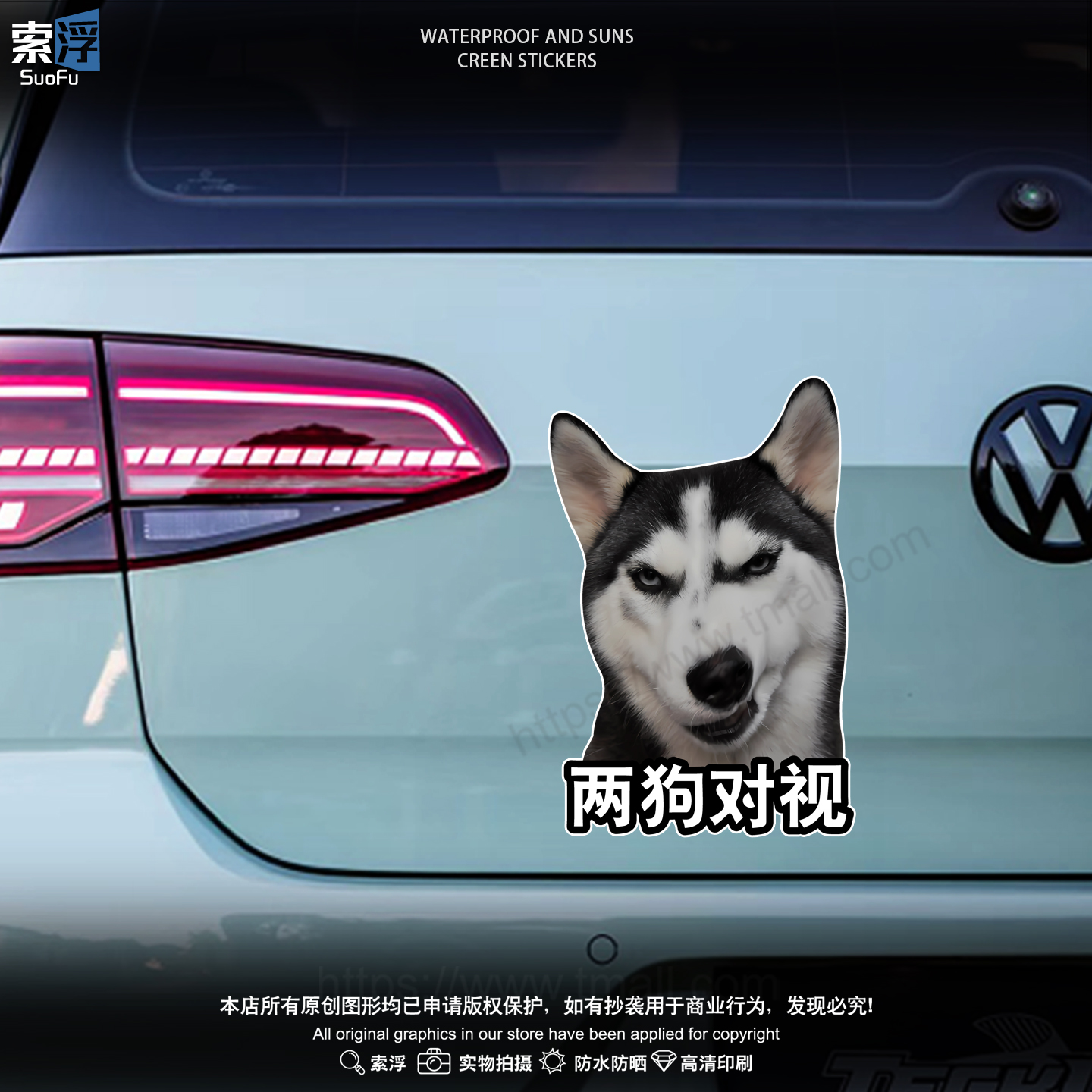 哈士奇表情包两狗对视车贴搞笑有趣汽车装 创意防水贴画 饰贴纸个性