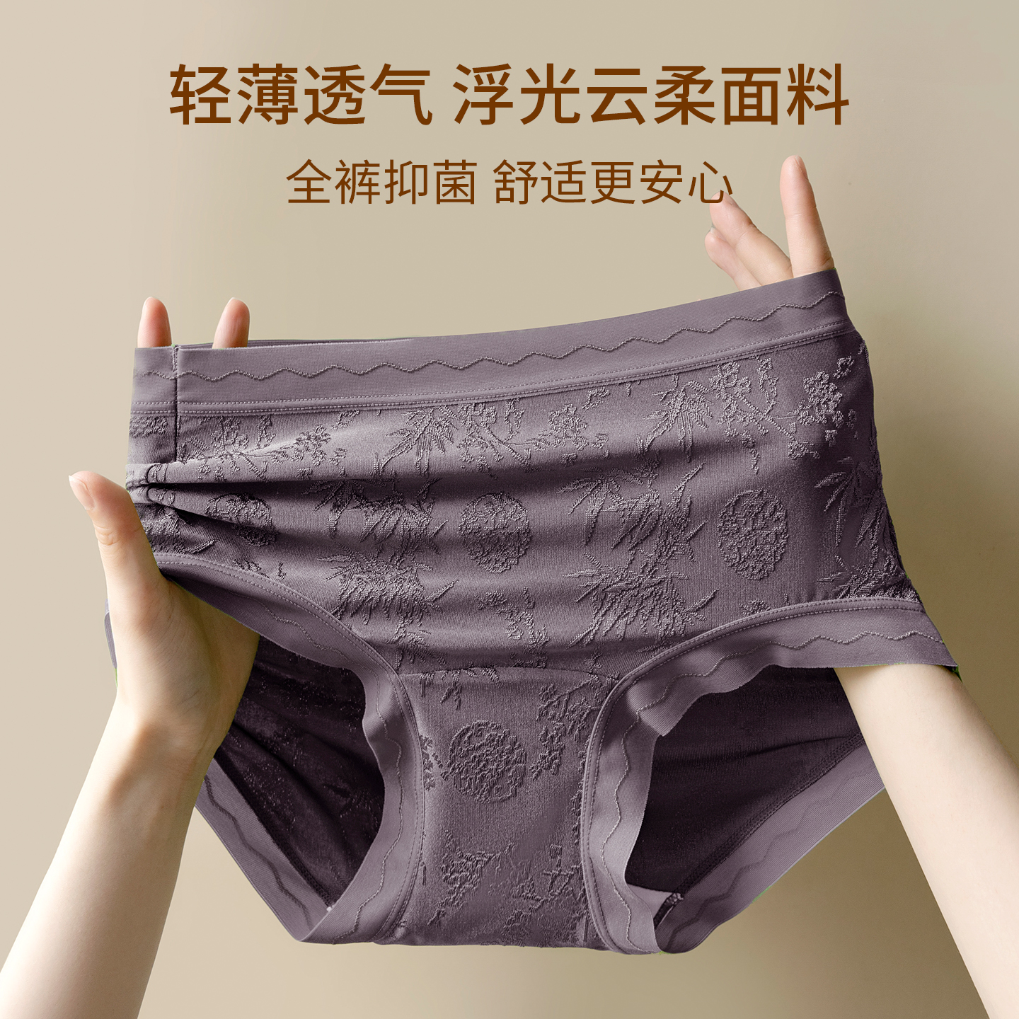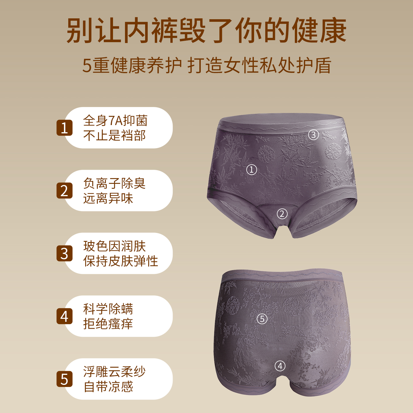 不夹臀7a级抑菌蚕丝加长裆三角裤 美宅国风浮雕养护内裤 女2025新款
