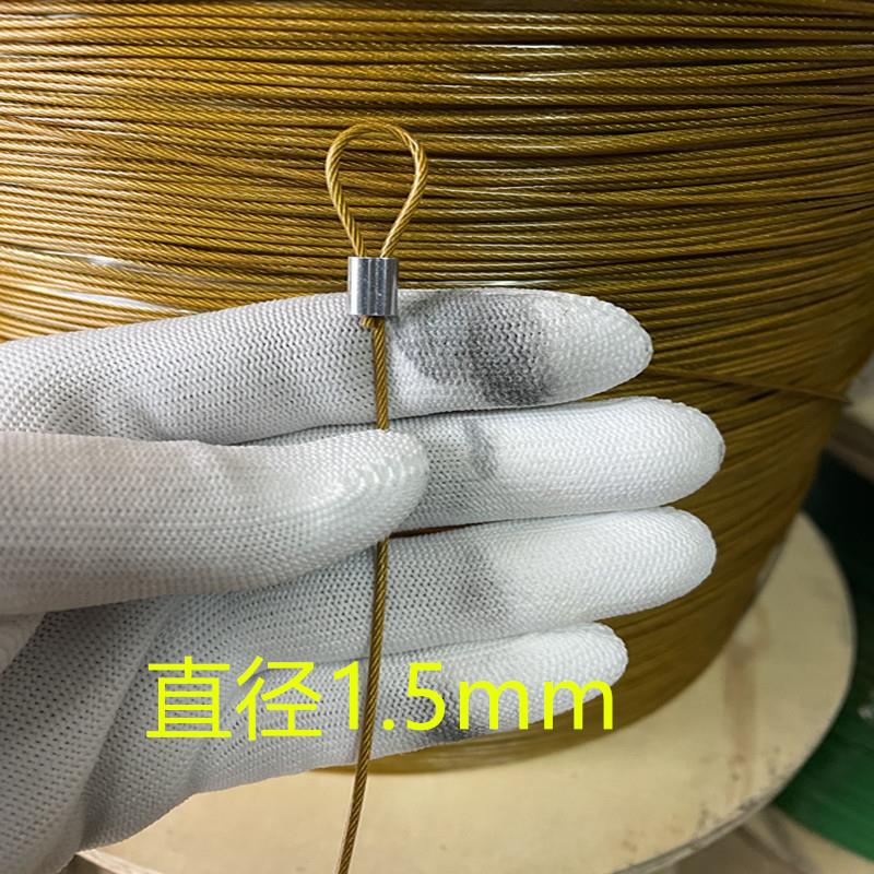 软钢丝绳金色304不锈钢黄色包塑细软钢丝绳吊牌子挂画钓鱼线拉绳