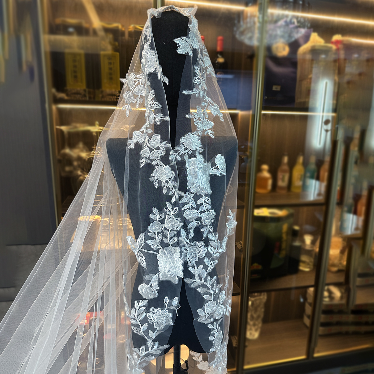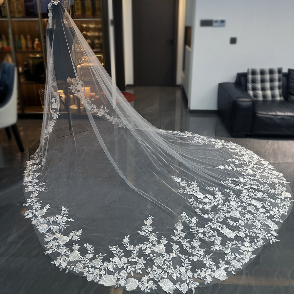 新娘结婚主婚纱头纱超仙森系法式 蕾丝高级感长拖尾头纱2025新品