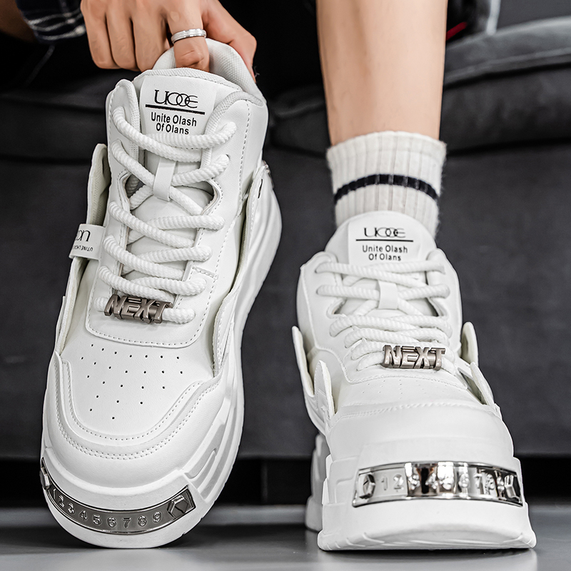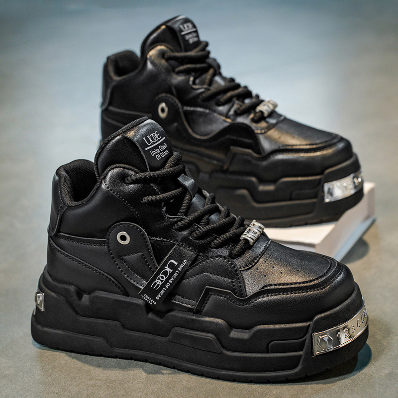 靴子 真皮防水厚底增高工装 森马马丁靴男秋季 高帮百搭休闲白色板鞋