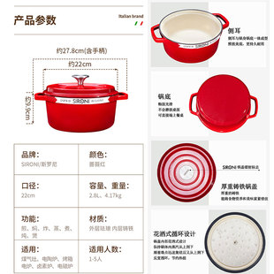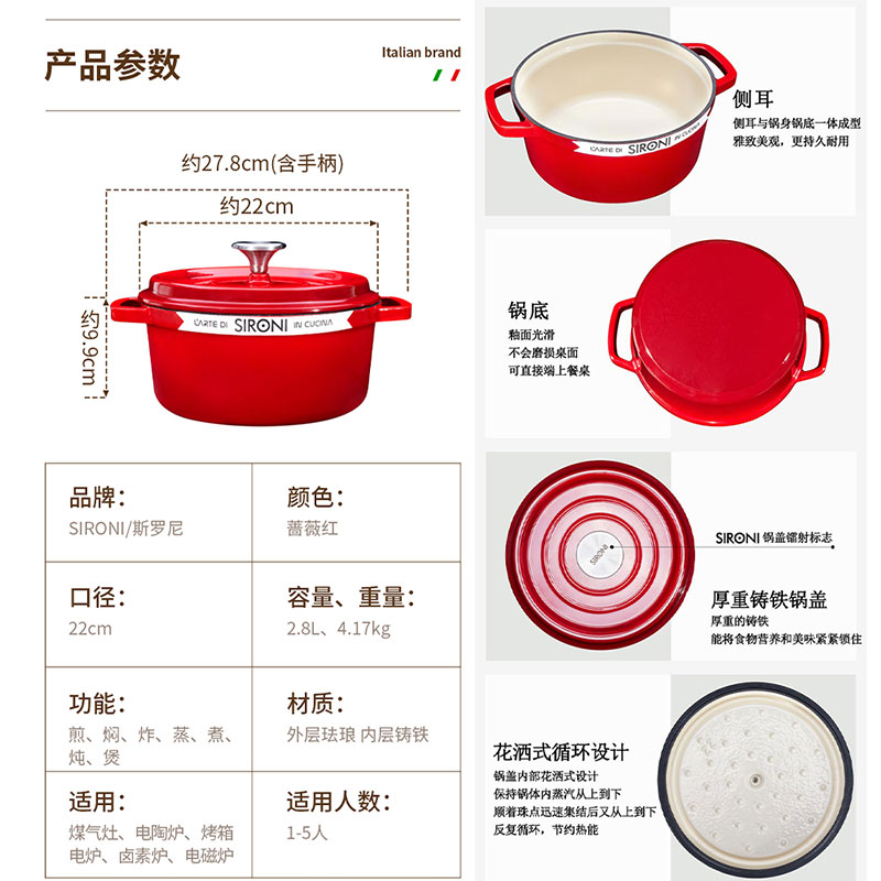 SIRONI珐琅铸铁锅汤锅22cm红色