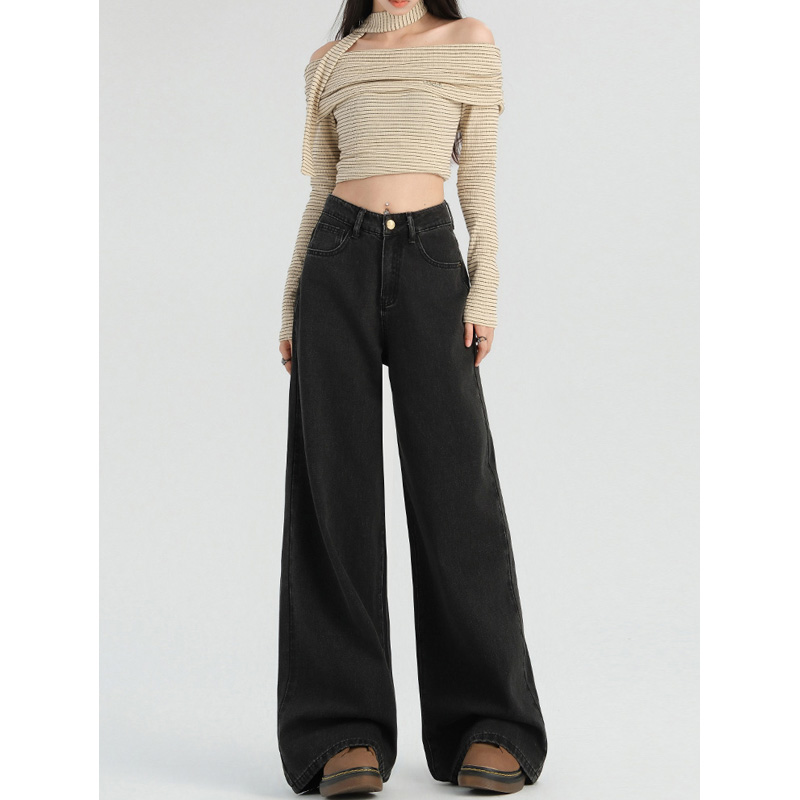 白色窄版 高腰显瘦松弛感直筒拖地裤 阔腿牛仔裤 2025新款 女夏季 美式