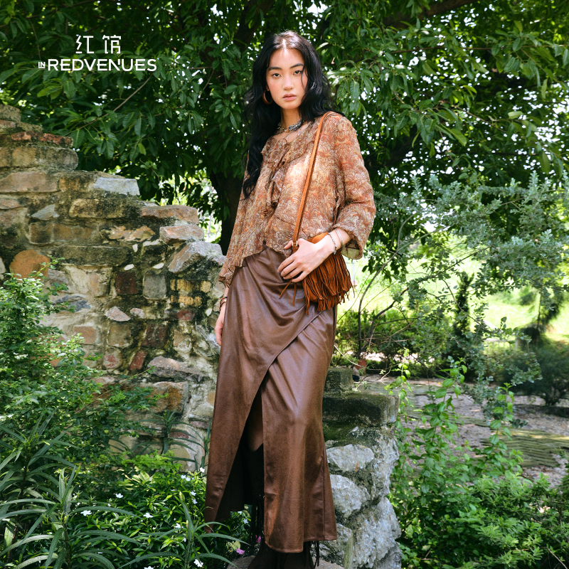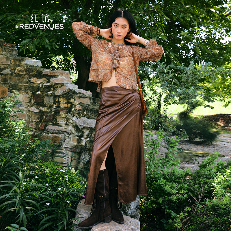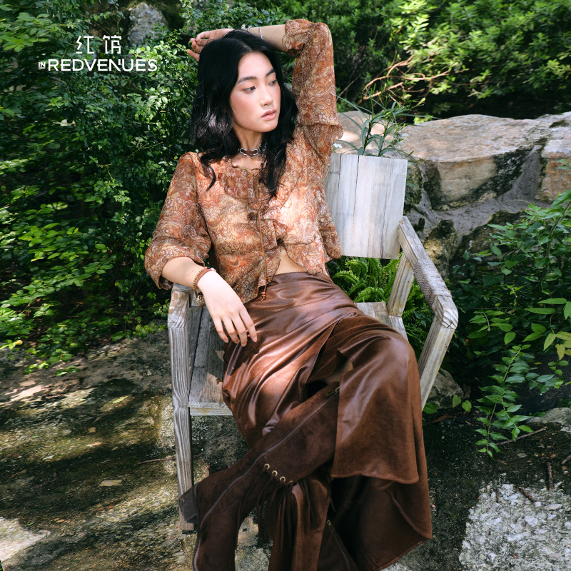 佩斯利穿搭腰果花小衫 红馆25早秋新款 荷叶边漂亮小上衣女雪纺开衫