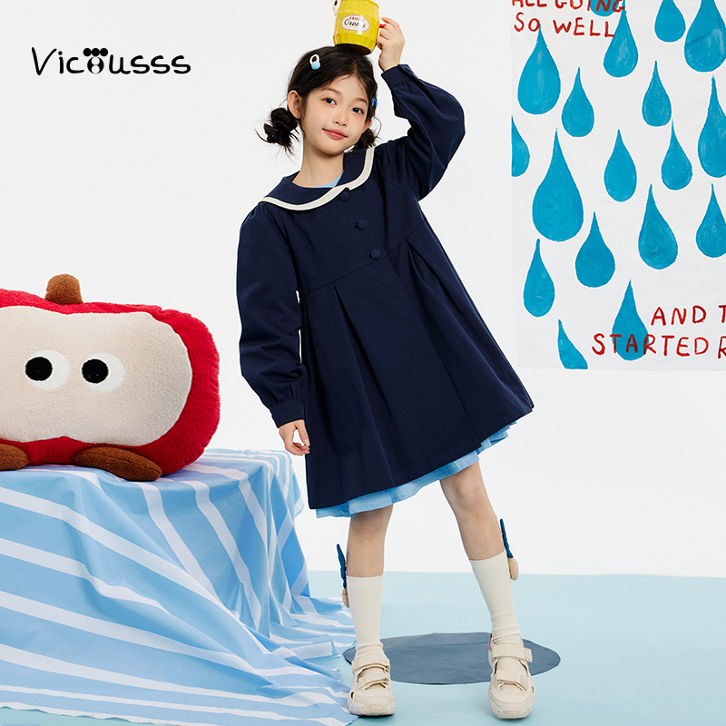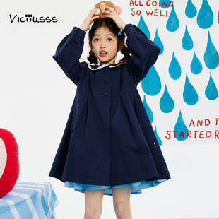 viciusss丸社女童风衣2025新款 春秋儿童洋气公主裙女孩连衣裙外套