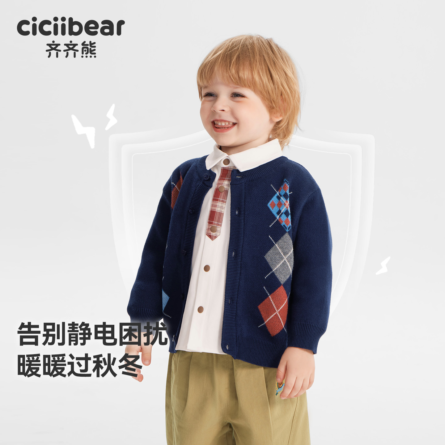唐狮2025秋冬新款 甜美百搭 女毛衣韩系撞色扣设计圆领针织开衫