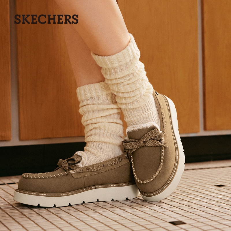 经典 女鞋 毛毛鞋 百搭休闲单鞋 时尚 斯凯奇秋冬女舒适加绒保暖乐福鞋