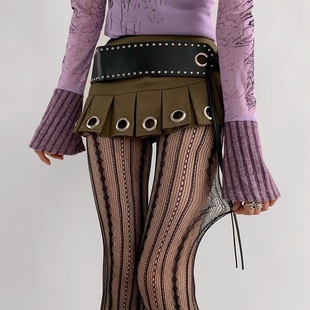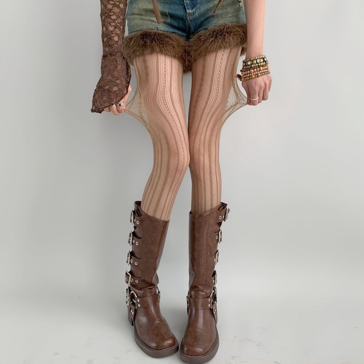 性感棱形灰丝咖色复古个性 袜女 镂空蕾丝渔网袜竖纹提花春夏天连裤