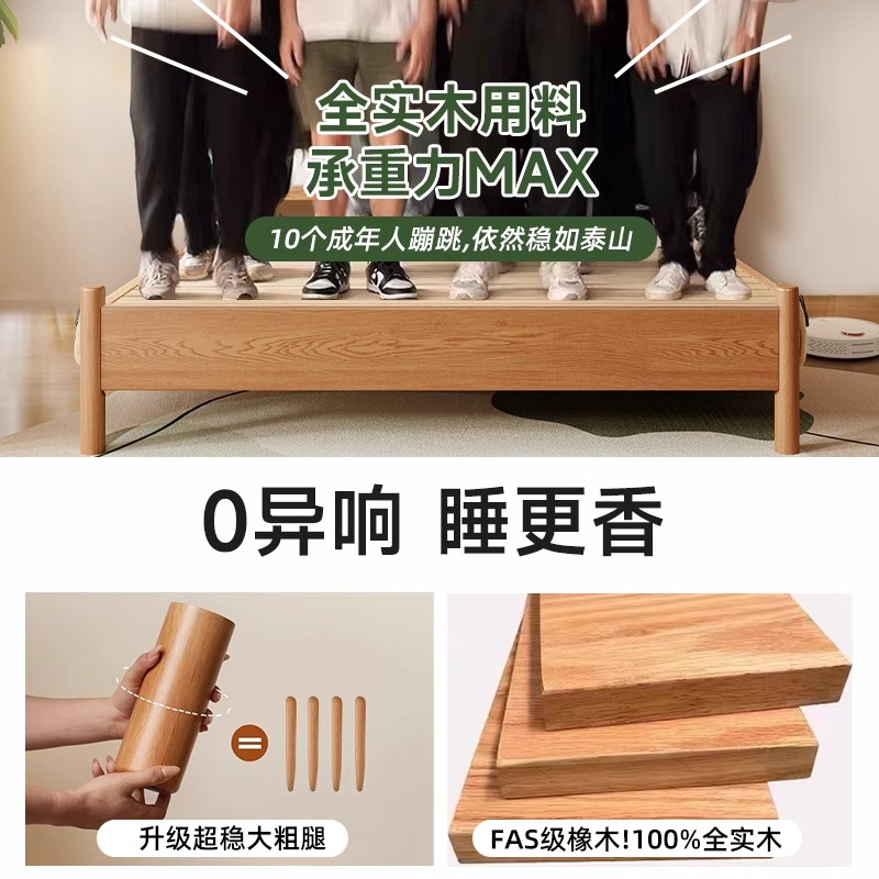 床实木床1米8双人床家用卧室原木风可充电1.2橡木1.5米单人床床架