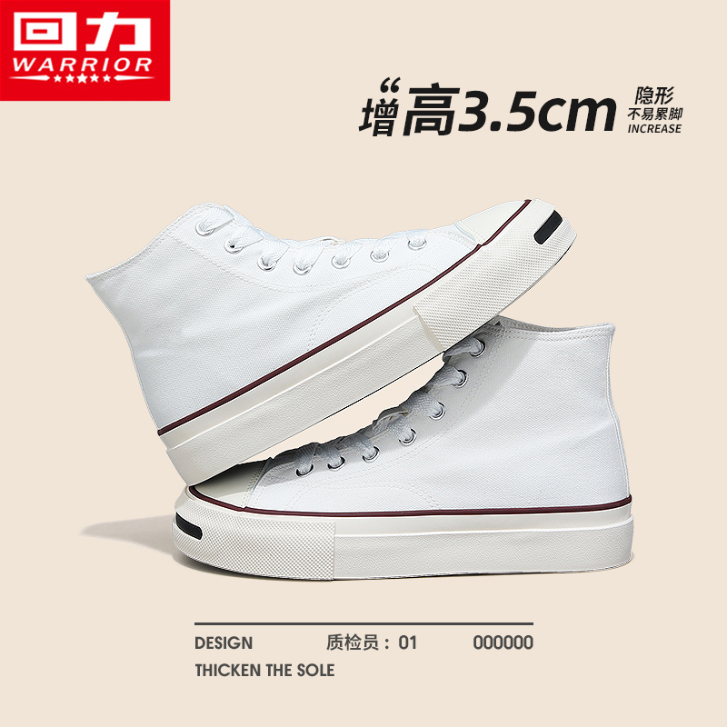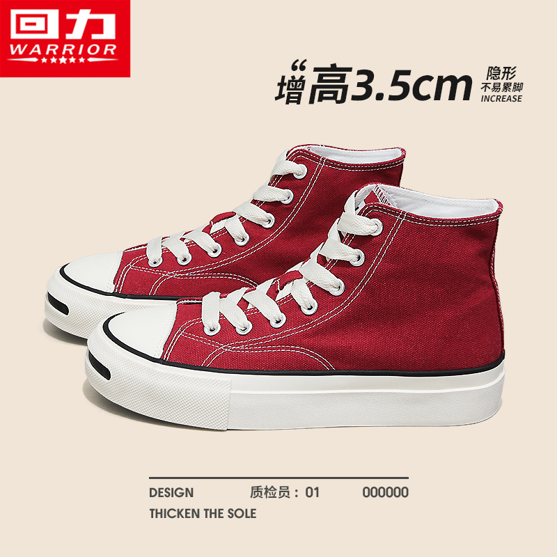 情侣厚底帆布轻便板鞋 透气运动学生休闲布鞋 秋季 回力红色高帮女鞋