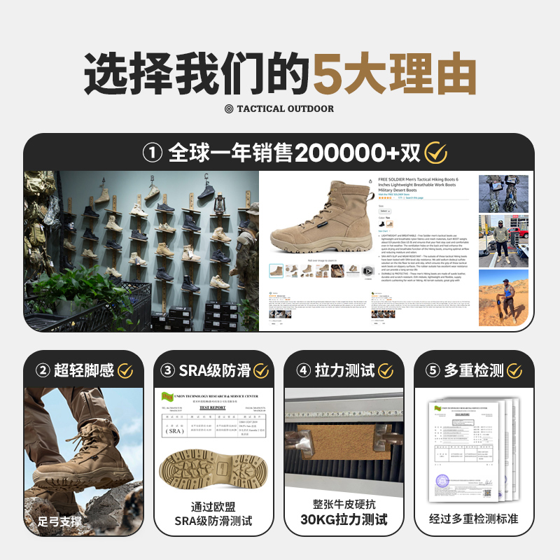 自由兵风暴户外战术靴沙漠靴徒步登山鞋 作战训靴防水 马丁靴秋冬季
