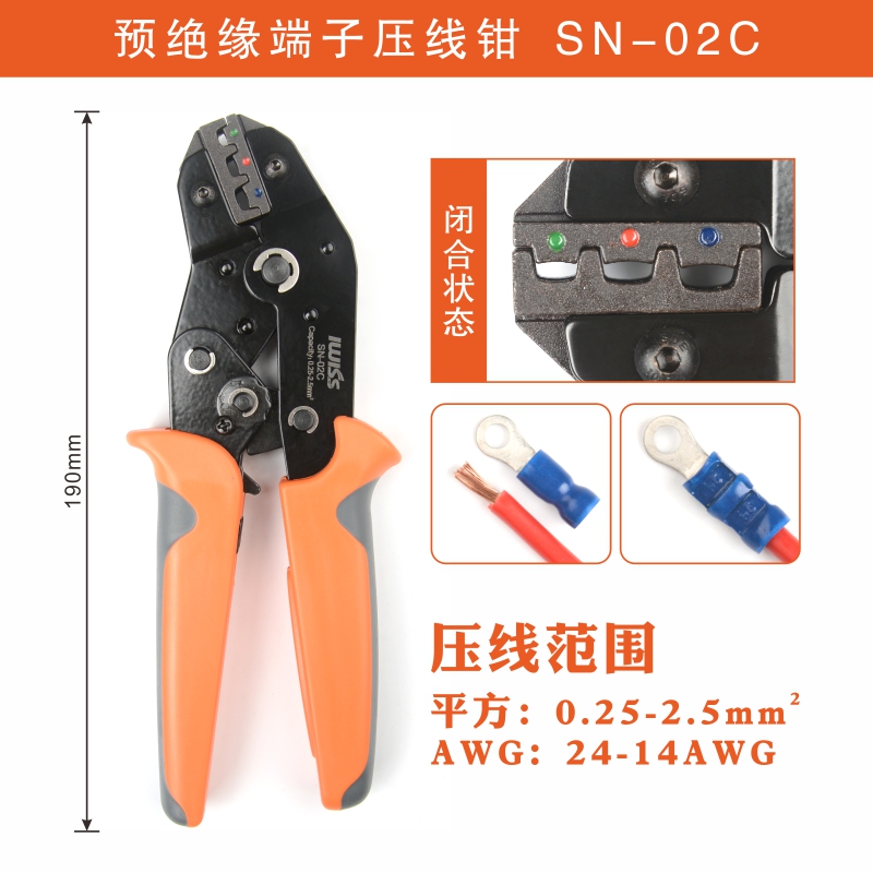 IWISS杜邦线2.54 4.8插簧裸端子接线铜鼻子束SN针管型压线钳 3.96