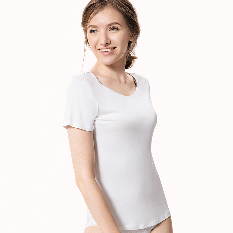 金三塔100%桑蚕丝真丝女士透气舒适t恤百搭圆领纯色打底衫 薄