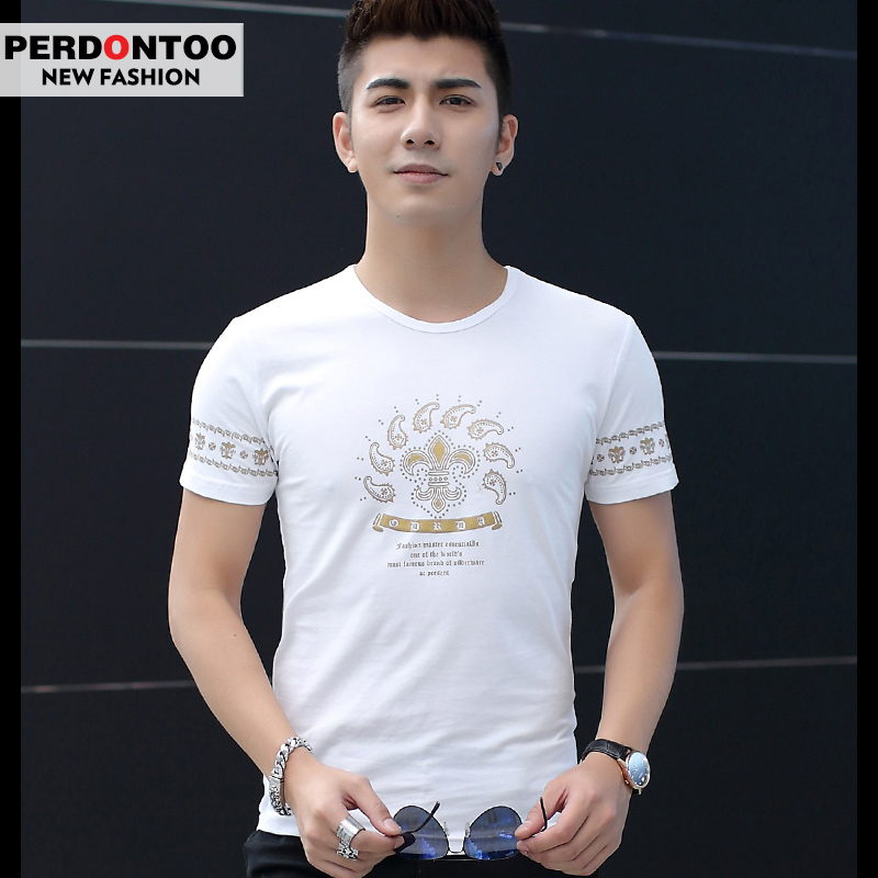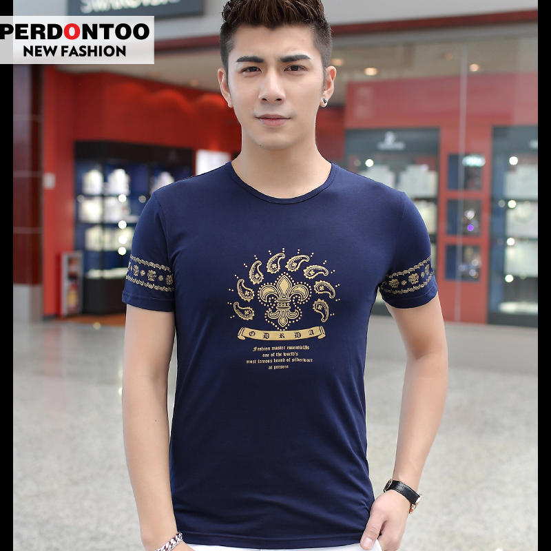 冰丝半袖 2件 夏季 t恤男2025新款 潮牌烫金衣服潮流体恤 丝光棉短袖