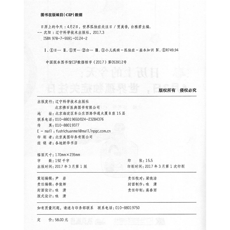 今天 日历上 4月2日世界孤独症关注日 贾美香 社 正版 辽宁科学技术出版 现货