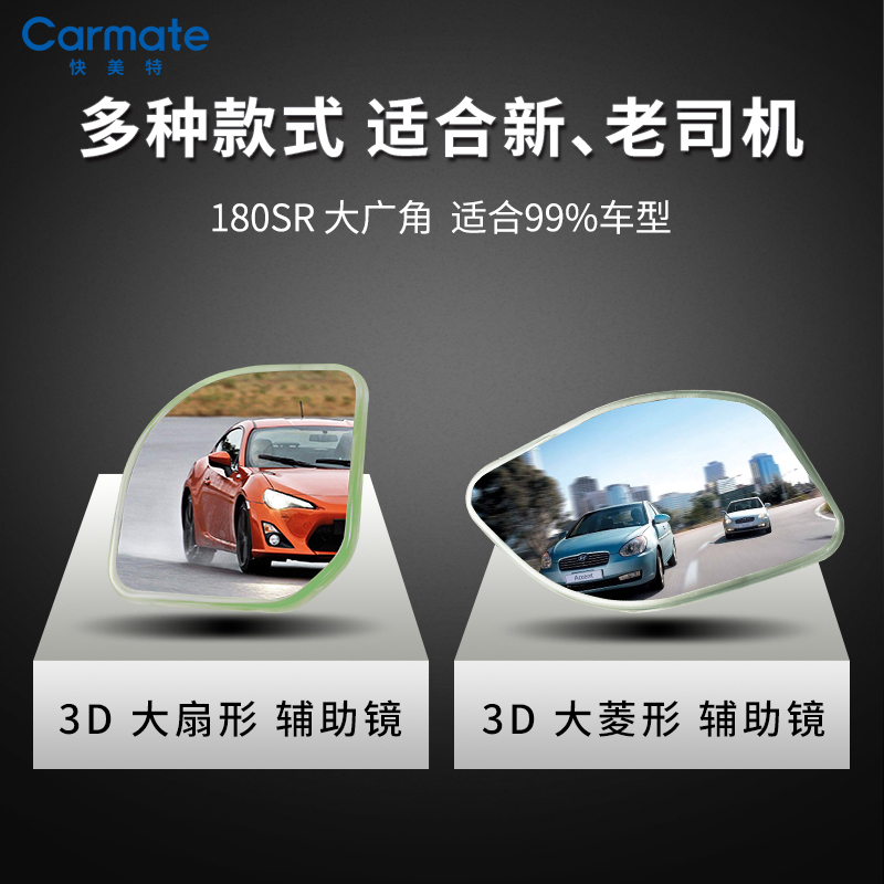 日本快美特通用高清倒车后视镜小圆镜360度可调盲区广角辅助防雨
