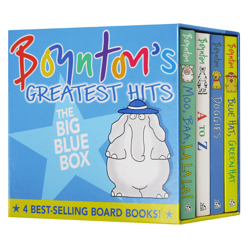 纸板书 幼儿英语启蒙图画书 Blue 英文原版 Boynton Box Hits Greatest 英文版 桑德拉博因顿4册绘本 The 颜色字母声音动物 Big