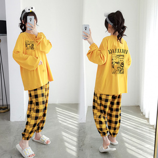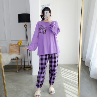 胖mm大码 230斤可外穿 睡衣女200斤春秋纯棉加肥加大家居服休闲套装