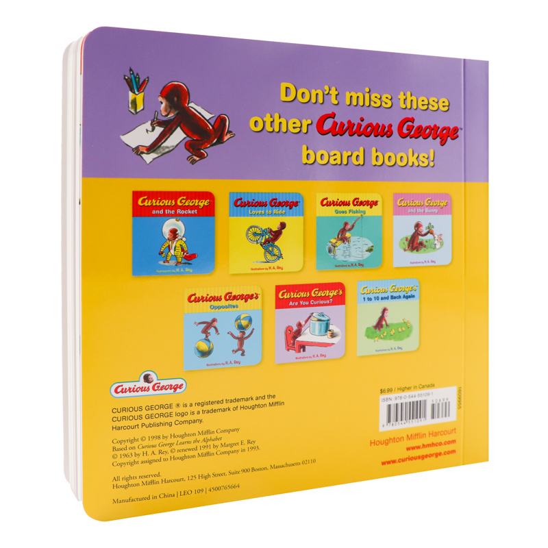 好奇 纸板书 绘本Curious ABCs Mifflin 英文原版 Houghton 乔治abc Georges 3岁儿童读物 英语启蒙早教 Harcourt出版 亲子家庭
