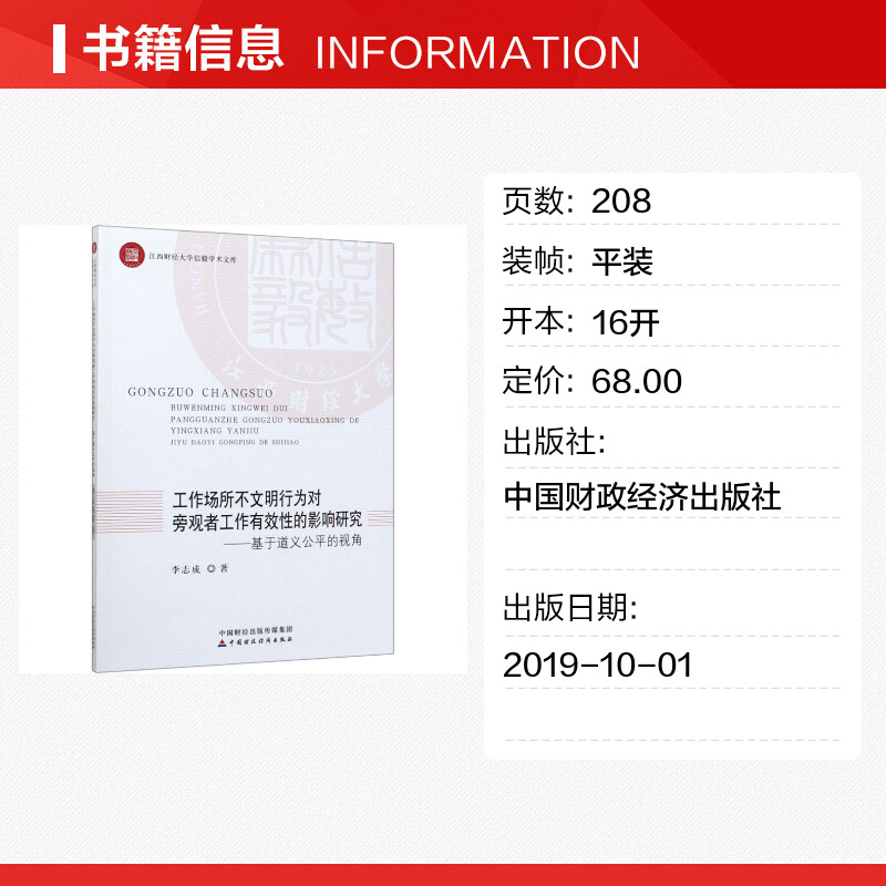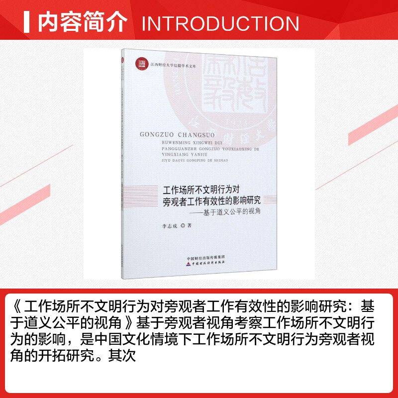 李志成 著 各部门经济经管 工作场所不文明行为对旁观者工作有效性 新华书店正版 视角 励志 图书籍 影响研究——基于道义公平
