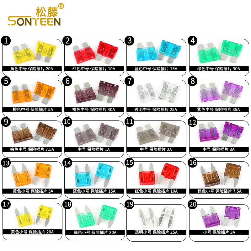 10A 15A 40A 汽车保险管氙气灯保险丝中号小号迷你保险插片20A
