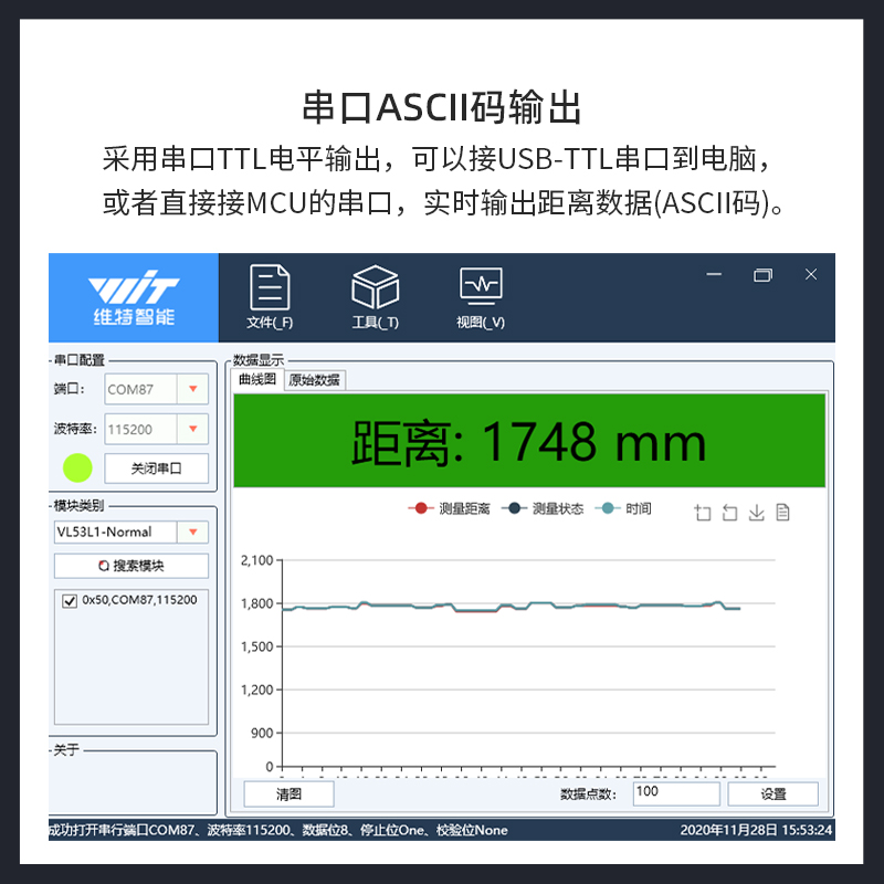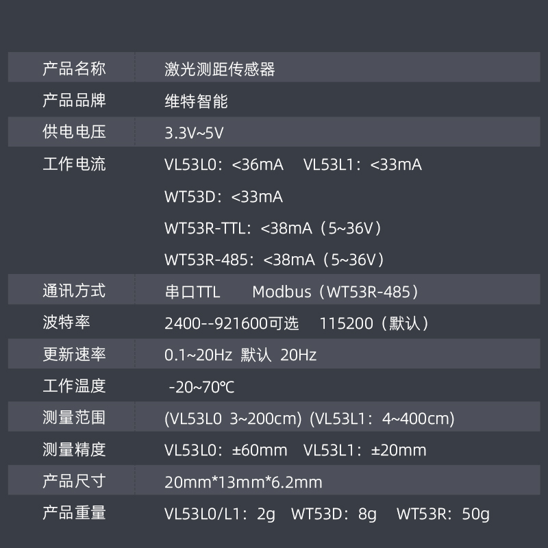 激光测距传感器模块 VL53L0 TTL I2C输出 WT53R 485 萌界数码