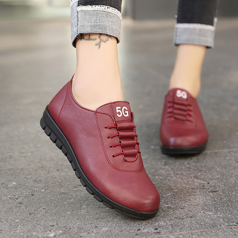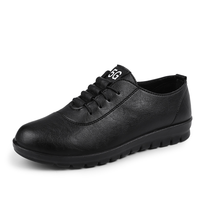 老北京布鞋 女妈妈软底皮鞋 防滑防水黑色上班工作鞋 餐厅厨房专用鞋