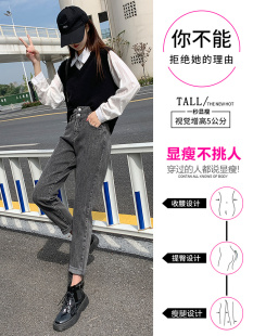 胖mm显瘦老爹裤 黑色大码 子 女弹力双排扣2025年春秋新款 高腰牛仔裤