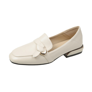 女2025春季 一脚蹬两穿单鞋 新款 粗跟小皮鞋 百搭方头乐福瓢鞋 豆豆鞋