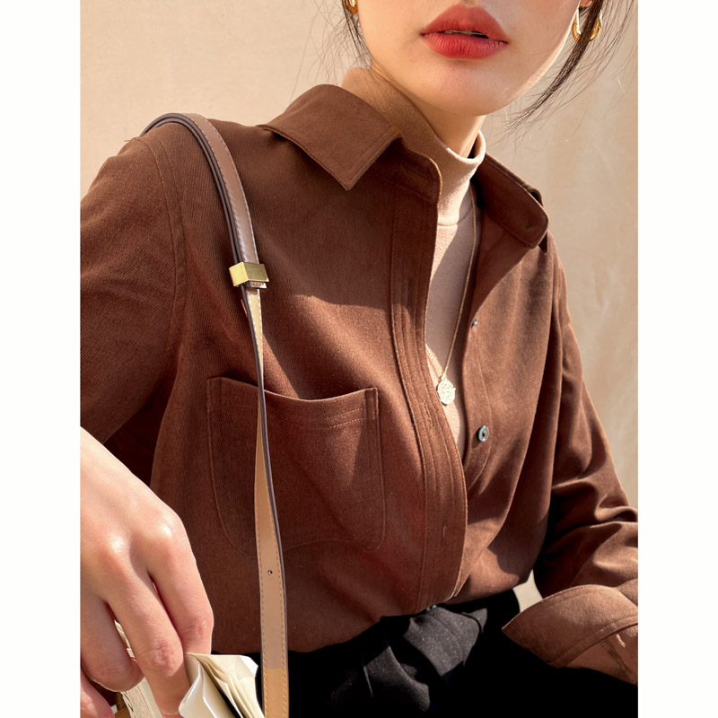 宝诗黎针织假两件格子拼接衬衫 中长休闲简约百搭宽松上衣 2025秋季