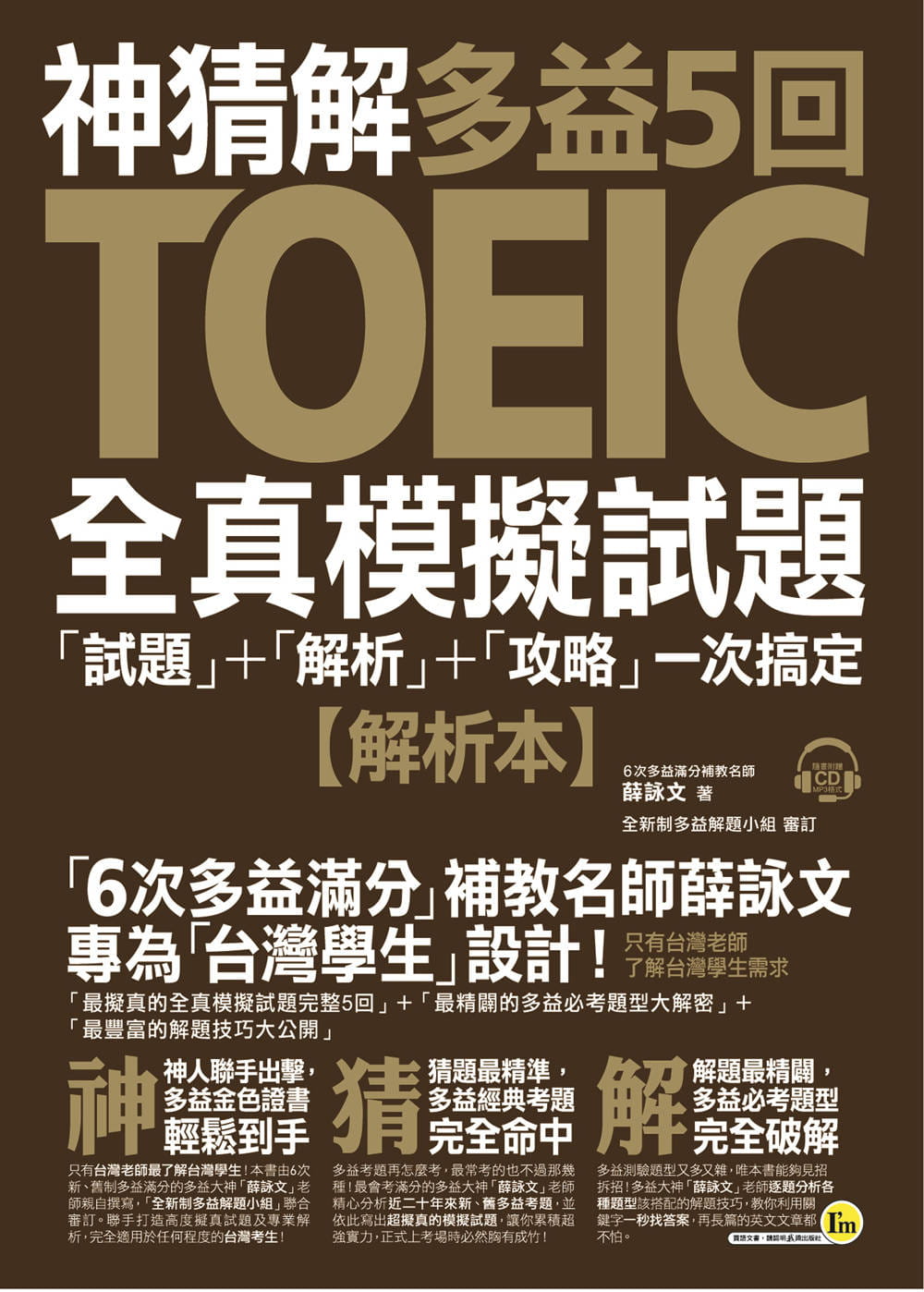 原版 语言学习 进口书 薛咏文神猜解TOEIC多益5回全真模拟试题「试题」+「解析」+「攻略」一次搞定我识 现货正版