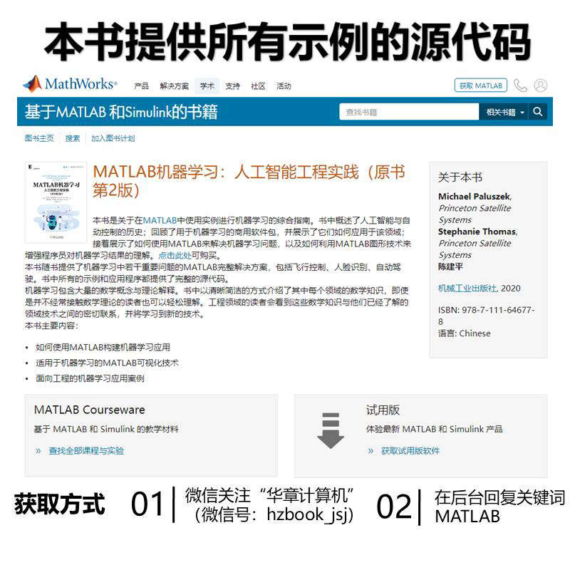 智能系统与技术丛书 原书第2版 在MATLAB中使用实例进行机器学习 综合指南 社 MATLAB机器学习 机械工业出版 人工智能工程实践