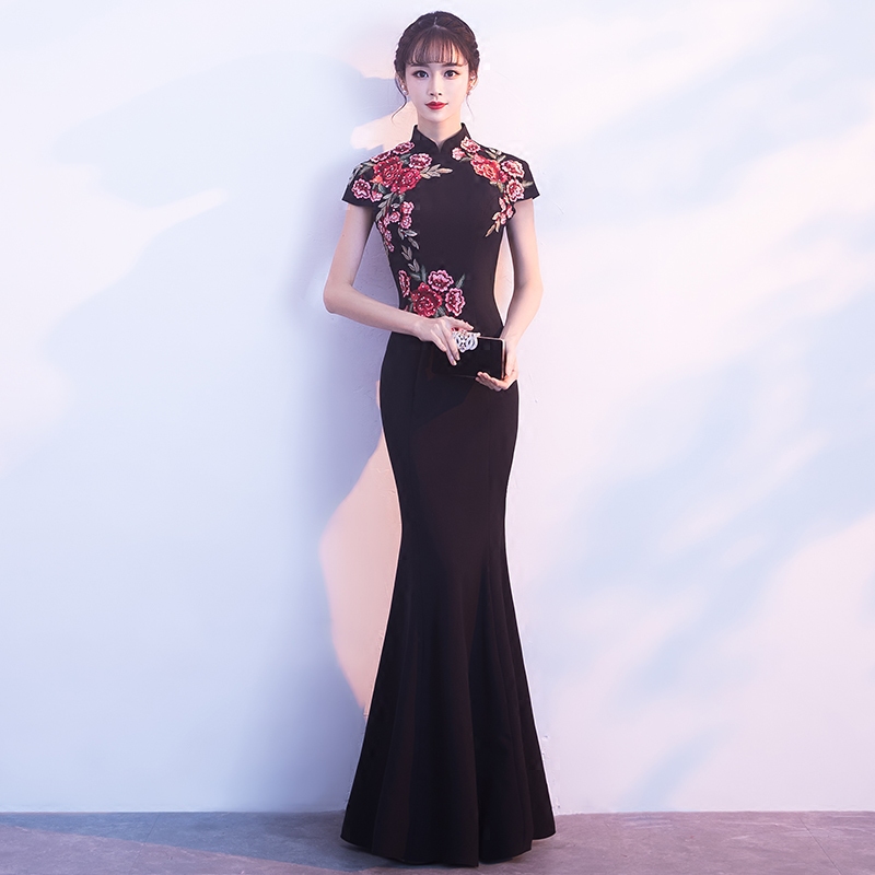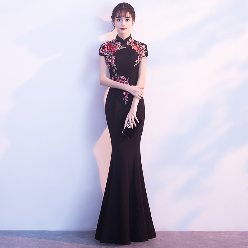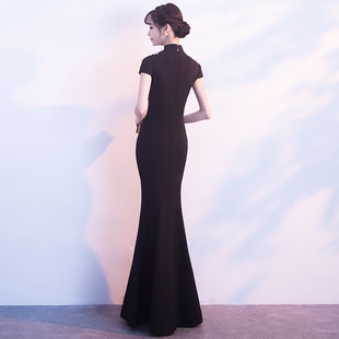 宴会晚礼服女2025新款 鱼尾高贵气质高端质感大合唱演出服 黑色长款