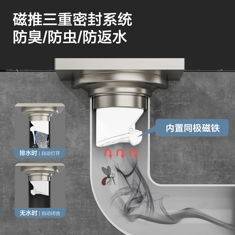 潜水艇防臭地漏枪灰全铜防堵洗衣机卫生间长方形官方旗舰店官网
