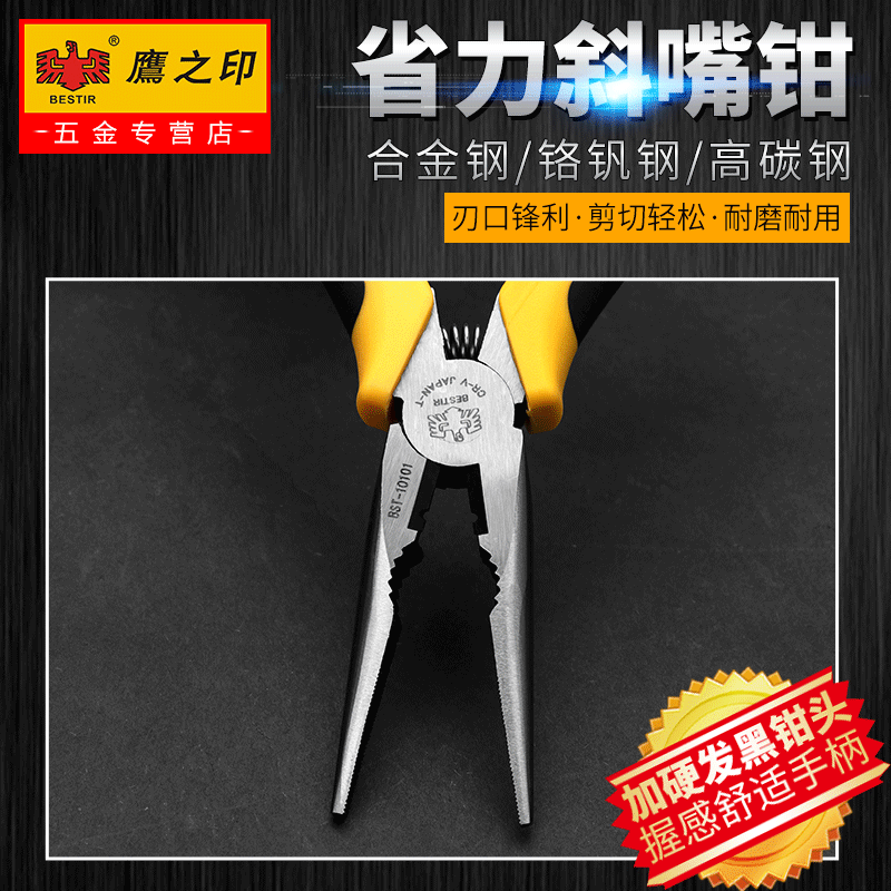 鹰之印6寸8寸尖嘴电工钳尖头尖咀钓鱼钳尖头尖咀钳子针嘴钳