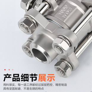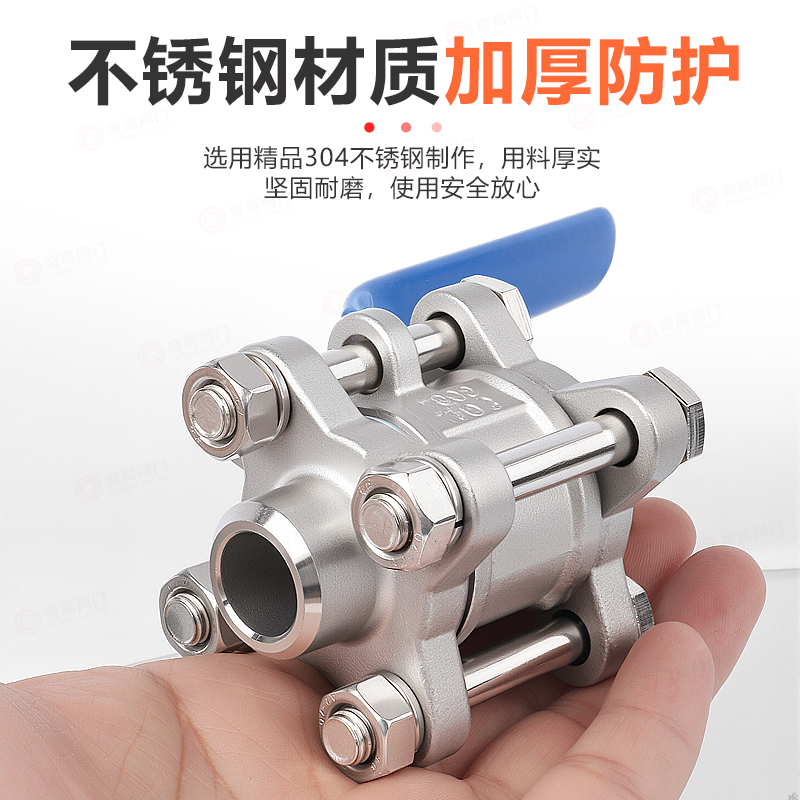 三片式 焊接球阀304不锈钢对焊水阀门Q61高压水管开关WOG奇高阀门
