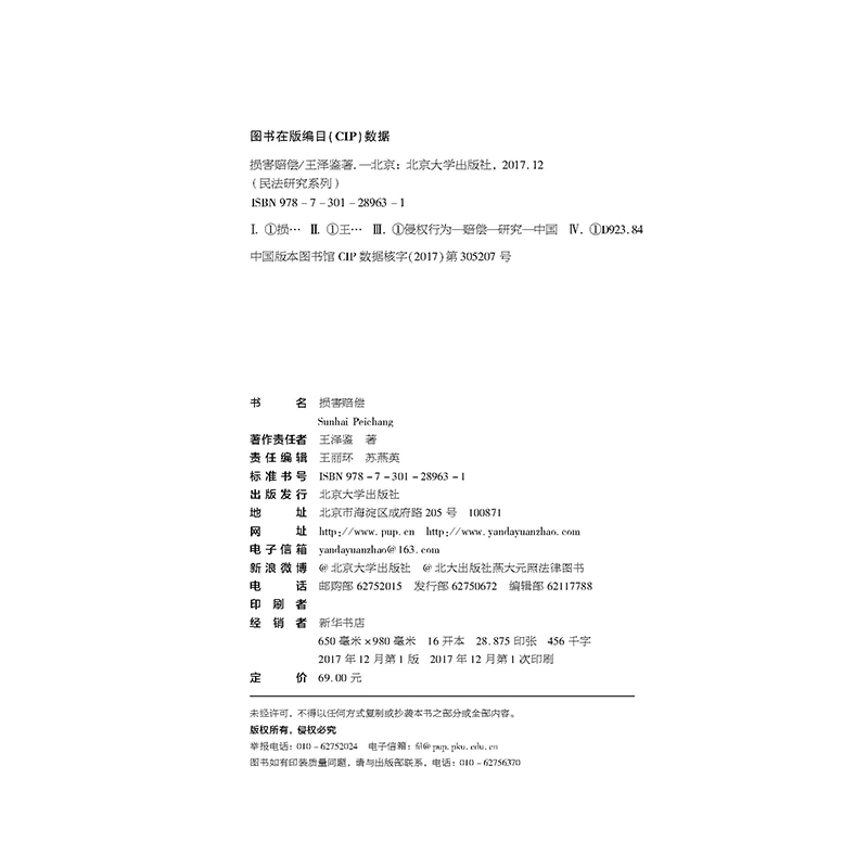 印章版 2017年12月北京大学出版 损害赔偿 王泽鉴民法研究系列 社9787301289631可搭配民法思维不当得利民法总则概要 王泽鉴著