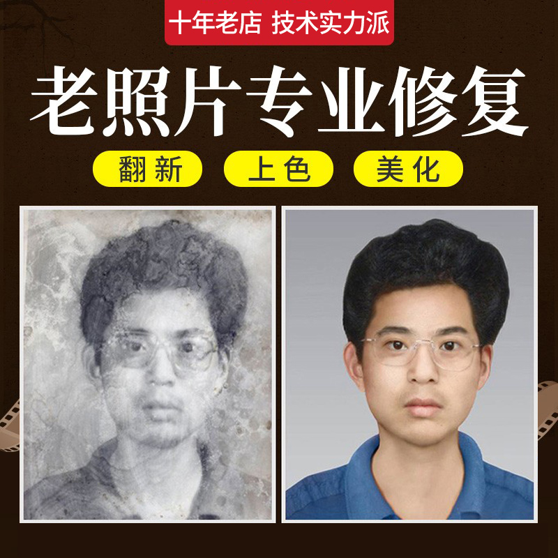 老照片修复翻新处理旧照片修补相片黑白上色去皱损坏图片清晰还原