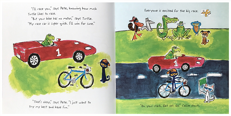 廖彩杏书单美国畅销 附30贴纸 the 皮特猫 往前冲 Pete Cat 情绪绘本 英文原版 绘本图画故事书 进口