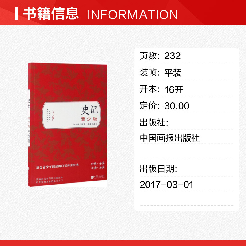 中国通史文学 社 西汉 中国画报出版 图书籍 新华书店正版 改写 著;南南 司马迁 青少版 史记