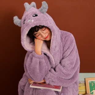 红豆情侣泡泡绒睡衣加厚男士 法兰绒女珊瑚绒防螨抗静电家居服套装