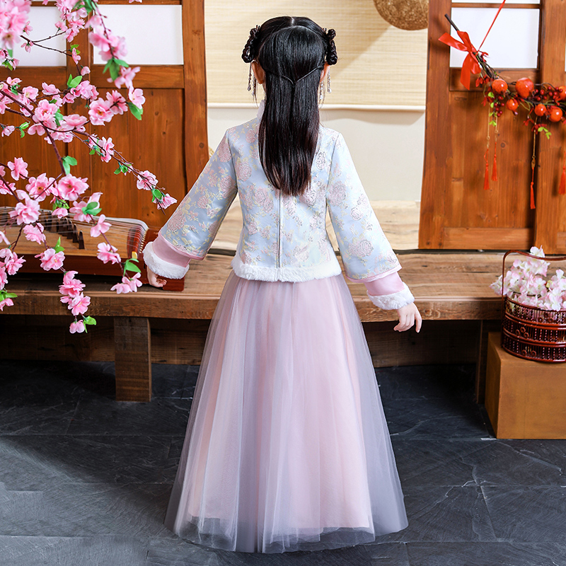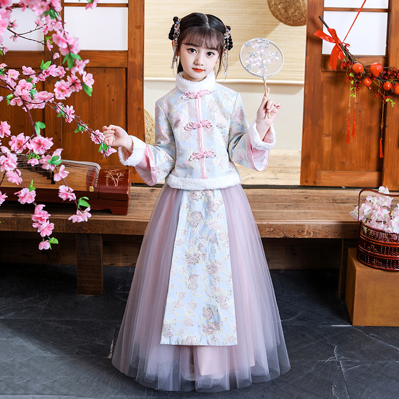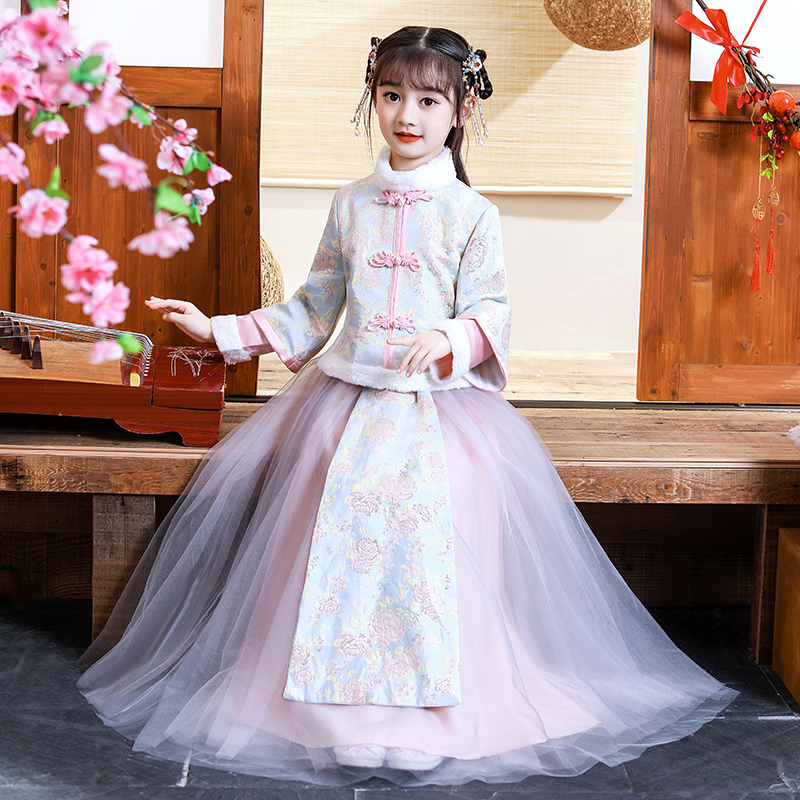中国风超仙加厚加棉秋冬季 小女孩古装 拜年服儿童唐装 汉服女童冬装