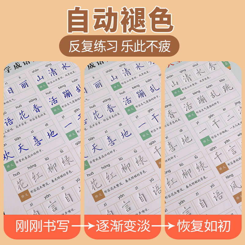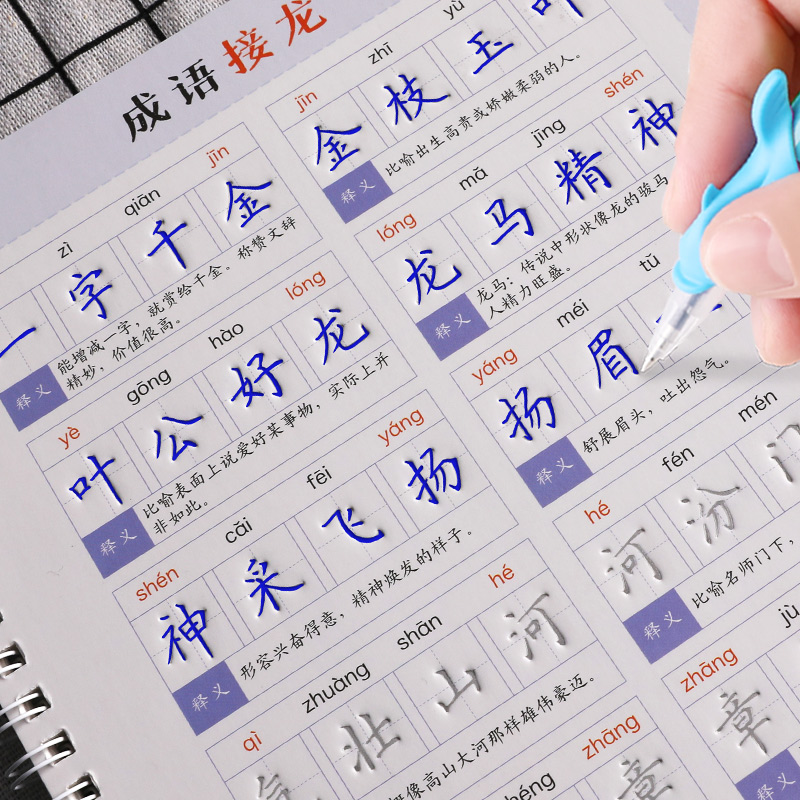 小学1 6年级同步成语练字帖贴三四五六年级成语训练儿童楷书凹槽成语接龙练字本正楷书法硬笔反复使用初学者每日一练写字速成神器2