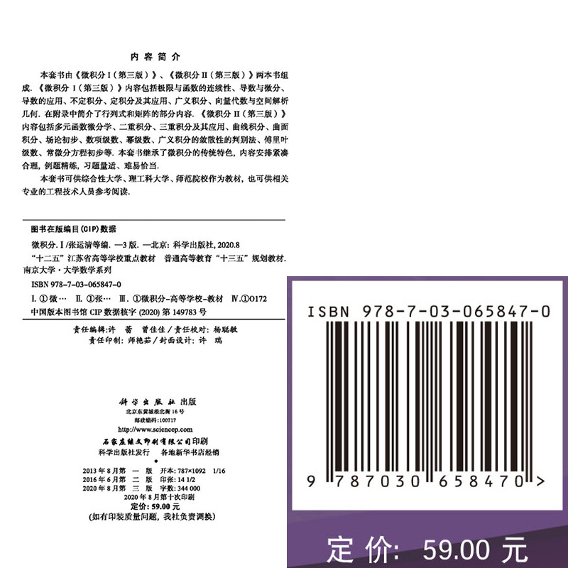社张运清等9787030658470 3南京大学大学数学系列科学出版 现货 微积分I第三版