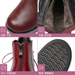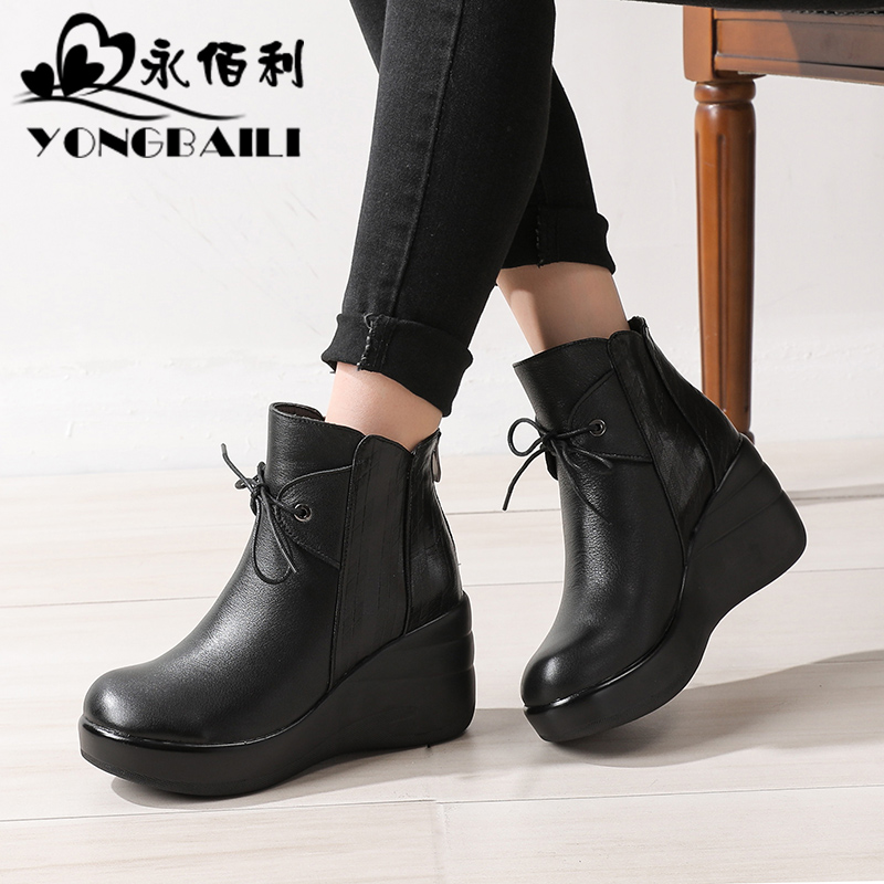皮鞋 坡跟厚底真皮短靴女2025冬新品 圆头高跟加绒女靴软底舒适女鞋