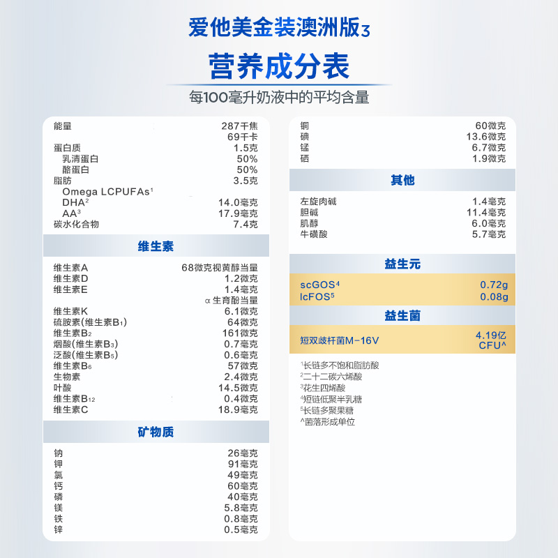 12个月900g 新西兰Aptamil爱他美较大婴幼儿奶粉2段6 3罐 自营