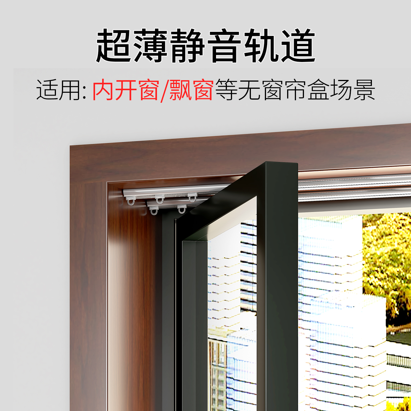超薄窗帘轨道顶装 滑轨 极薄内开窗专用极窄飘窗隐形直轨免打孔安装